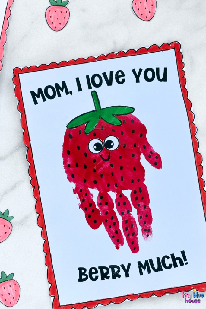 This handprint love you berry much card is perfect DIY gift for Mother’s day. Kids in preschool and kindergarten will have loads of fun creating this heartfelt keepsake to celebrate Mom.