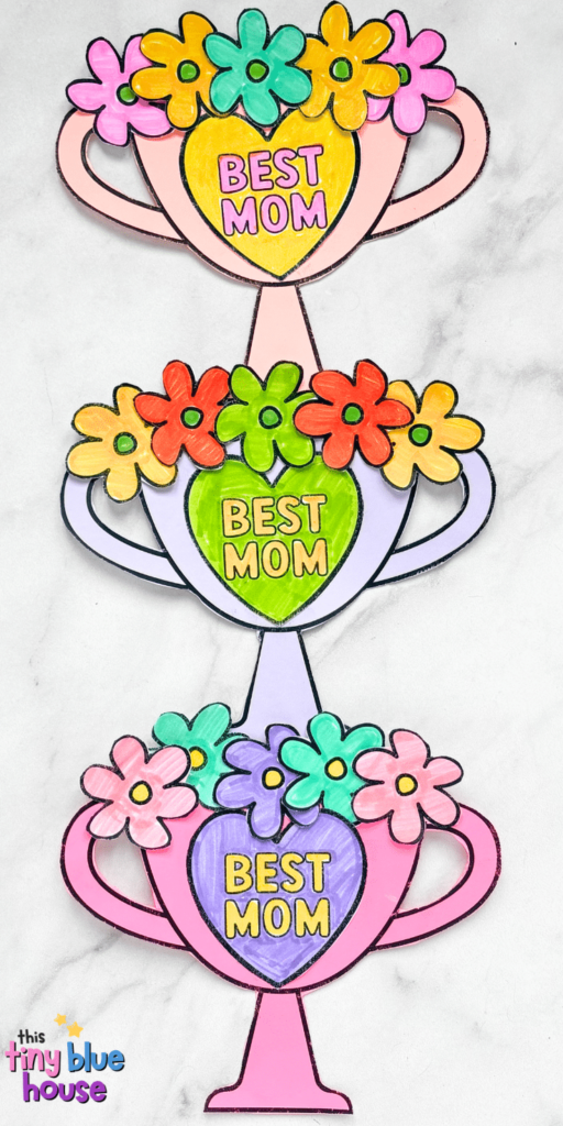 This cute Mother’s day trophy craft is a creative activity for children of all ages. Bright and colorful, this thoughtful Mother’s day craft is a great way to let Mom know how much she is loved.
