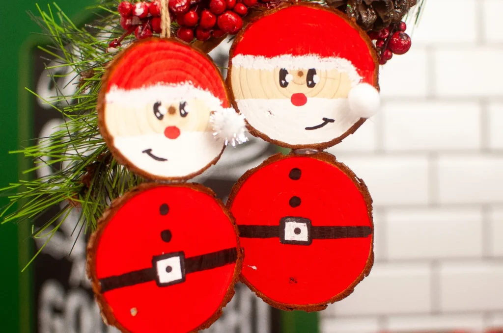 How to Make Easy DIY Wood Slice Santa Ornament Craft